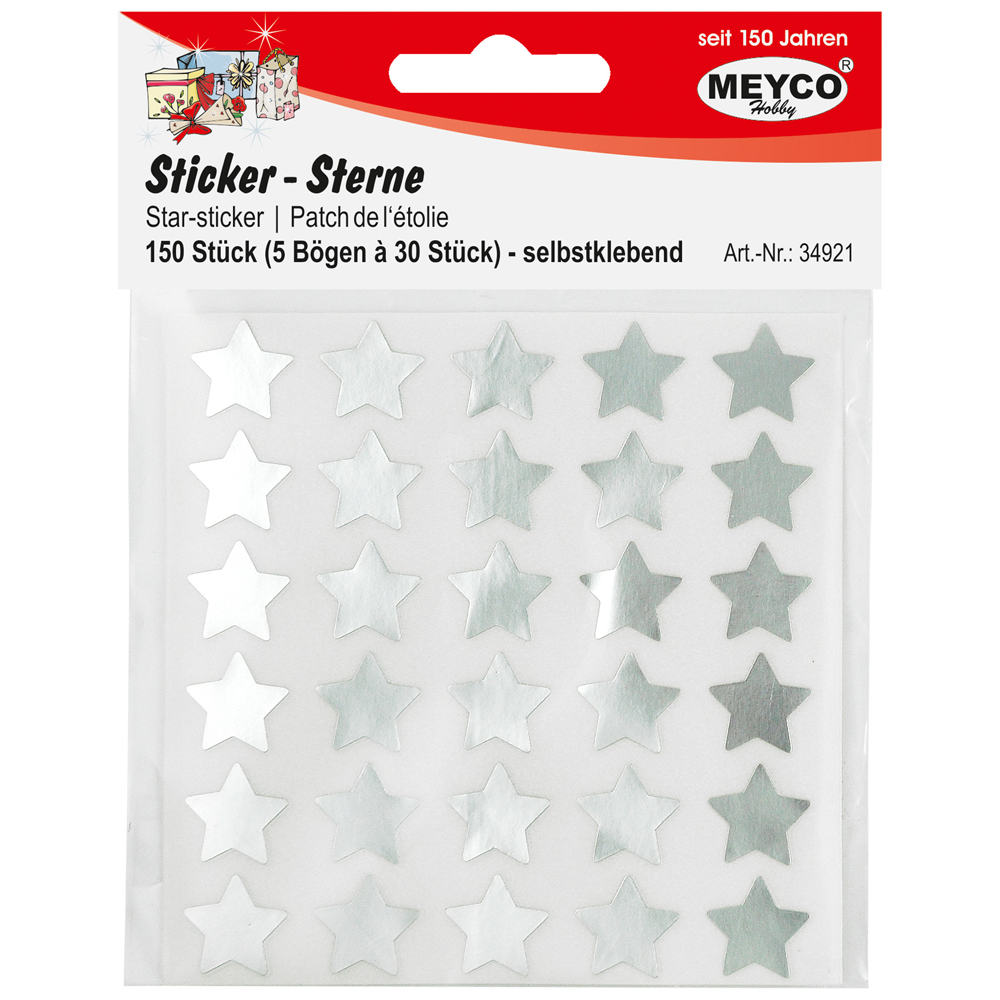 Samolepky hvězdy stříbrné 150 ks