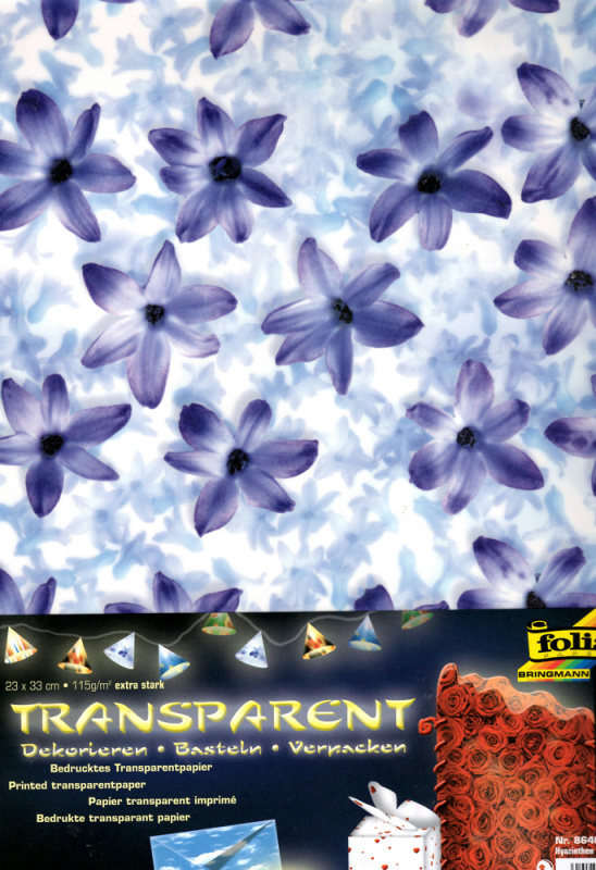Průhledný papír s potiskem- Modré květiny